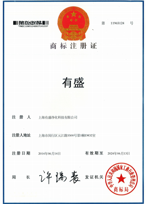 上海有盛净化商标注册证