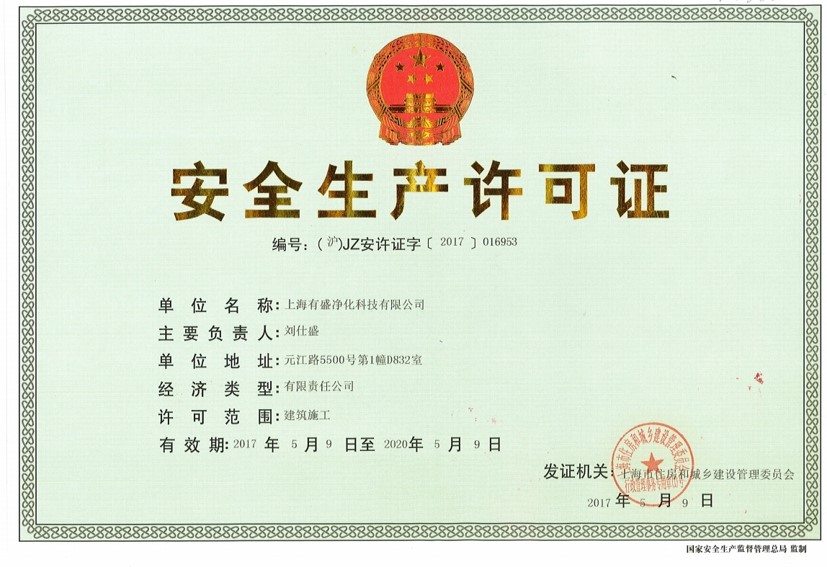 上海有盛净化安全生产许可证