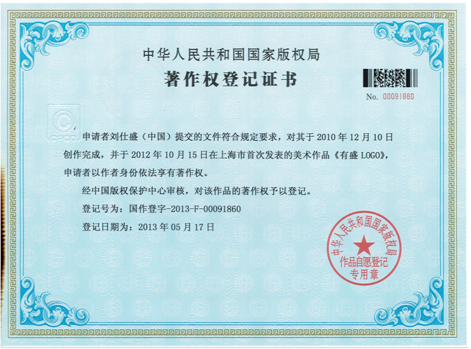 上海有盛净化著作权登记证书