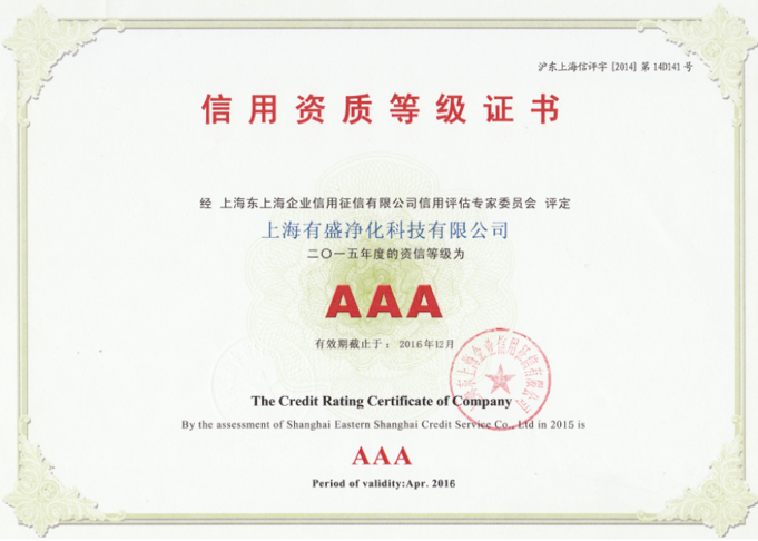 上海有盛净化信用资质等级证书